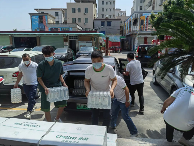 天湘板业志愿者小分队在战斗中化身“大白”,积极配合核酸检测一线队伍维护现场秩序、测量提问、登记信息等工作。白云区作为重点区域,自4月8日以来实施全员“一天一检”以来,我们的志愿者需要穿着闷热的防护服全天候奋战在防疫一线,他们始终用心做好每个环节,从不懈怠,不辞辛劳,为和龙村区域核酸检测采样工作提供了强大的支撑和保障。 在抗疫这场没有硝烟的战斗中,人力很重要,物力支持也要跟上。天湘板业支援太和镇防控重点区域一批矿泉水等防疫物资,为辛苦奋战在一线的防疫人员送上企业的关心与温暖,得到了当地社区的肯定和感谢。