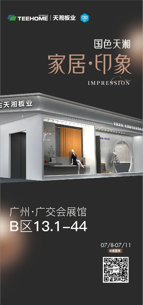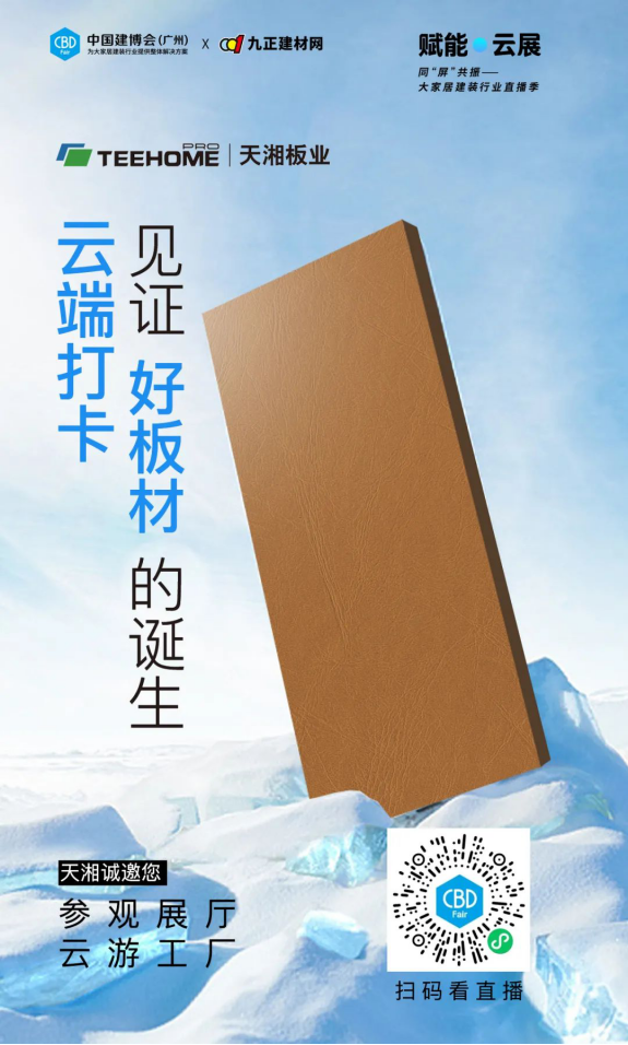 此次盛会,天湘板业携六大系列震撼新品亮相2022广州建博会,面面精彩,为你上演板材时装周,见证品牌的力量,天湘集团董事长刘总于云端直播间提前爆料神秘新品!扫描下方二维码即可查看回放。