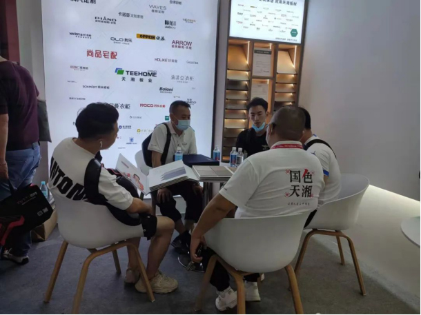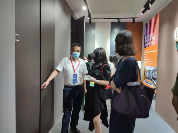 本次展会天湘以“家居·印象”为主题,结合橱窗形式充分展现了天湘高定板材的轻奢高颜值,吸引了大批新老客户前来参观体验,饶有兴趣地聆听天湘精英对产品的讲解。