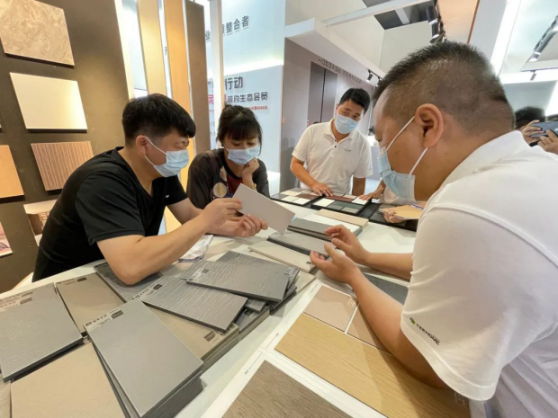 天湘板材凭借超高的颜值,优异的理化性能,原创的设计,先进的工艺在行业内继续驰骋飞扬,好板材需要细细品味,天湘团队做好每位参观者的向导者。