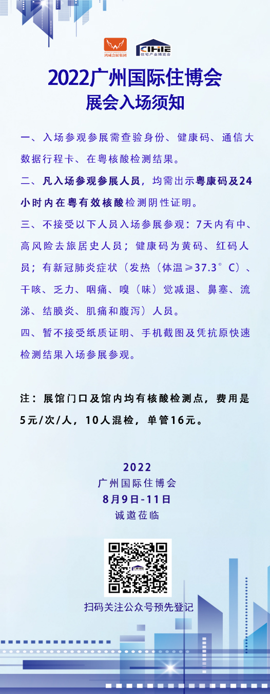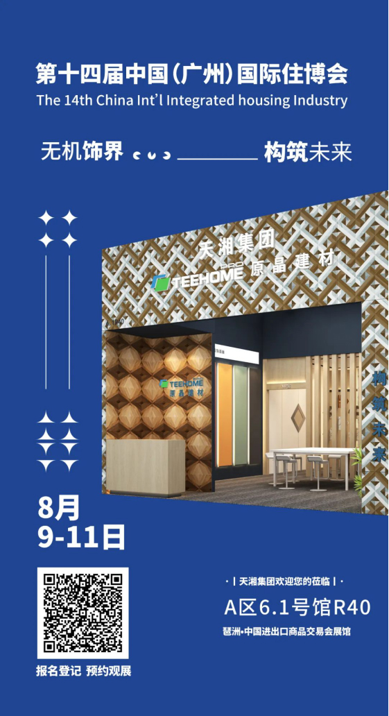 8月9日至8月11日,2022第十四届广州国际住博会将在广州琶洲•中国进出口商品交易会展馆举行。天湘集团原晶空间建材有限公司在A区6.1号馆R40诚邀您来一场无机饰界之旅,扫描下方二维码即可报名!