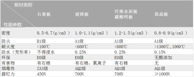 市面上多种无机板与原晶板的性能对比