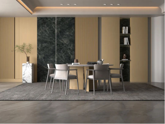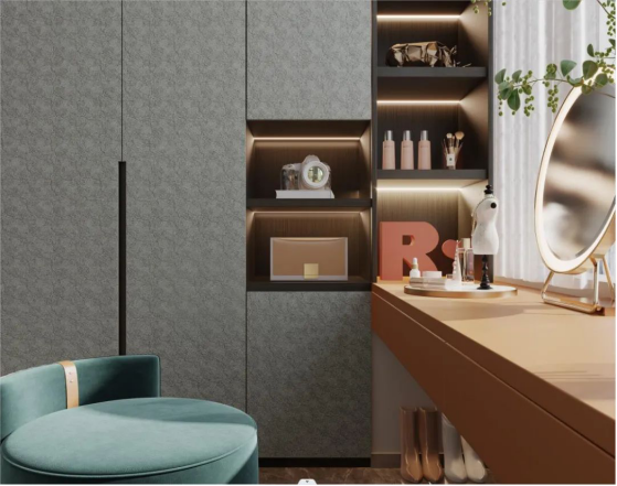 SD系列分别借鉴了服装(蕾丝SHOW),皮革(仿生小牛皮),金属(金砂极简)等行业,将其高级还原到饰面板上,大大丰富了板材的空间表现力,此谓外行为内行所用。