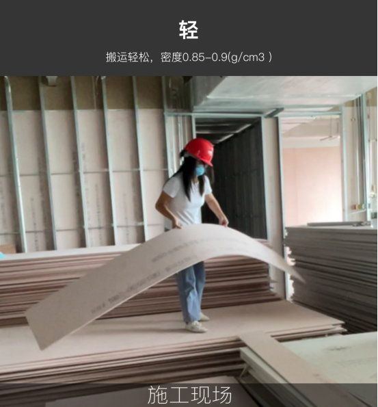 原晶板是市面上唯一密度小于1.0的可用于结构性用材的无机板,所以同等建筑面积下,使用原晶板可以节省运费和降低施工难度。
