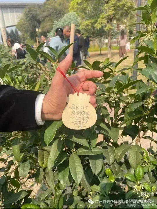 常务副会长唐树松为活动提诗祝福:植树315,苗木要帮扶,白云个体协,一家帮万户。