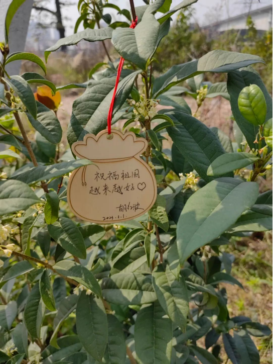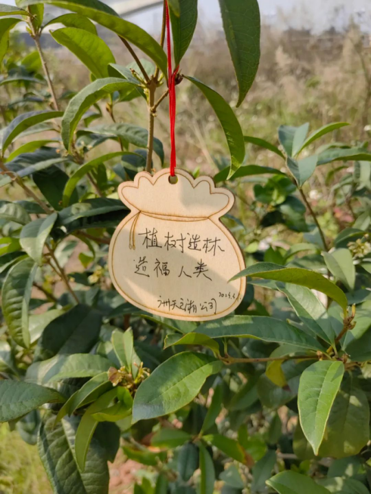 天湘板业胡红波胡总认真细致地栽种好每一株桂花树苗,并为每一棵树苗挂上“植树造林,造福人类”等祝福心愿福袋卡。经过大家团结一致的共同努力,一棵棵小树苗迎风而立,苗株成行,在明媚的春光里展现出勃勃生机。