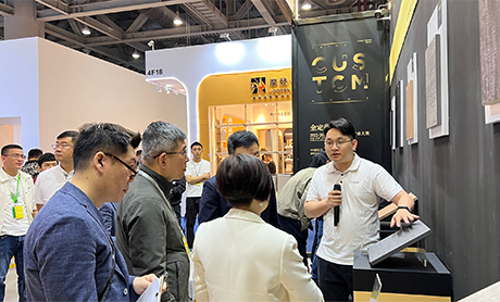 相比去年,我们的展厅再次升级,在这里你将看到最前沿的家居板材科技,最新的家居花色流行趋势,最全的轻高定家居材料集合。一起来现场领略最新板材黑科技吧,推一推,敲一敲,再闻一闻,选出你心中最佳。