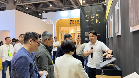 “中国定制原创20年”和“金定奖”两大IP联动,集结定制家居企业、供应链企业、行业专家、设计师、知名媒体人等各核心圈层,嘉宾云集,打造前所未有之产业盛事。天湘入围产品摩尔纹影木系列凭借优越饰面效果和物理性能,响当当的品牌,使得开展不久,我们的高定产品得到各业内人士的“百般考验”提问,人气火爆。