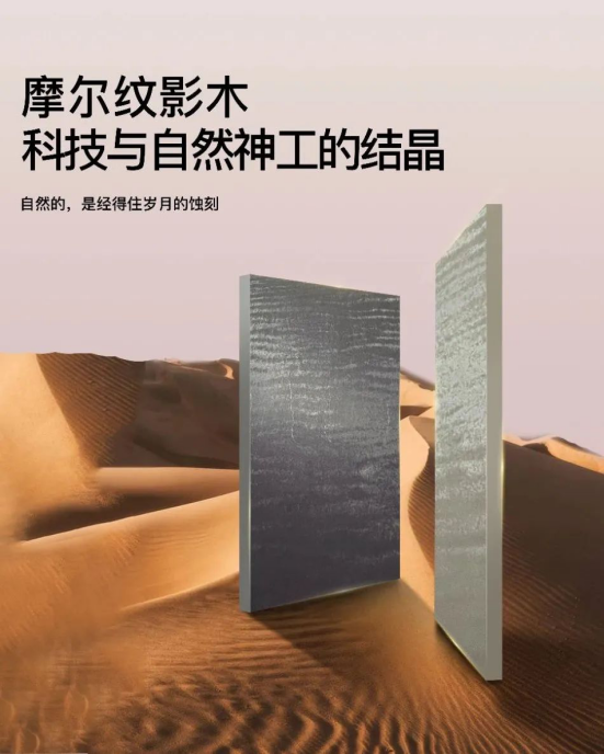摩尔纹影木是科技研发与自然造物的结合,这个系列产品整体上具有自然、尊贵、厚重感,非常适合那些追求自然、崇尚自然,具有消费能力的人士。