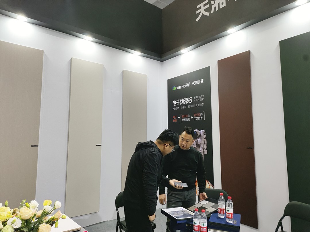 4月22日,第七届中国临沂全屋定制精品展在临沂国际会展中心盛大召开。趁着这股东风,天湘板业召开“天湘板业趋势新板华北招商会”,信息技术赋能共享云仓,赋能华北轻高定市场,助力天湘高定板材在中国华北市场各个领域的落地应用。