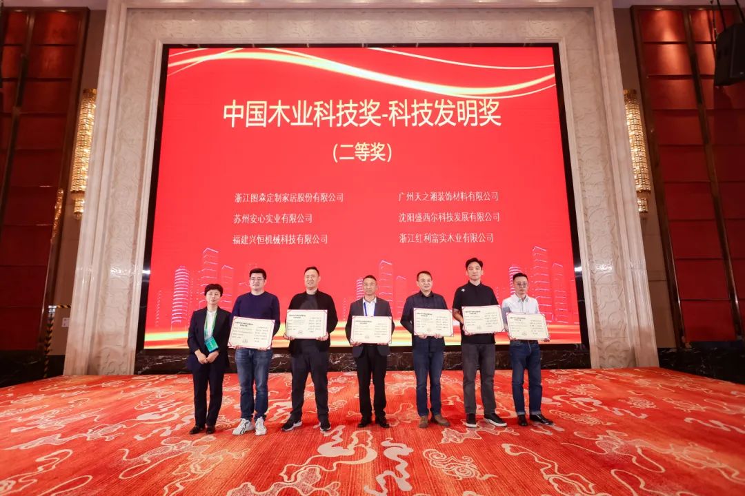 天湘板业在技术创新领域成果斐然,其产品 A 级防火原晶板成功斩获中国木业科技奖 - 科技发明奖二等奖。在颁奖仪式上,天湘原晶建材负责人的刘中衡庄重地接受颁奖嘉宾授予的荣誉证书。这一殊荣,既是对天湘板业长期以来在科研创新之路上执着奋进、成果卓越的高度认可,也彰显出其在行业技术前沿持续领航,推动行业技术进步的强大实力与坚定决心,无疑为整个板材行业树立了光辉典范,激励着更多企业在创新发展的道路上奋勇前行。
