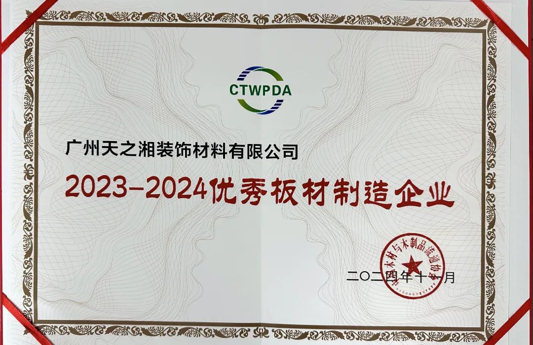 除此之外,天湘板业还被授予 “中国板材国家品牌”“2023 - 2024 优秀板材制造企业”“2023 - 2024 十大饰面板品牌”等多项殊荣。这些荣誉犹如璀璨星辰,镶嵌在天湘板业的品牌发展历程中,熠熠生辉。它们是市场对天湘板业产品品质、品牌影响力、创新能力以及行业贡献的全方位认可,标志着天湘板业在板材与家居领域已经树立起了卓越的品牌形象,成为行业标杆企业之一。