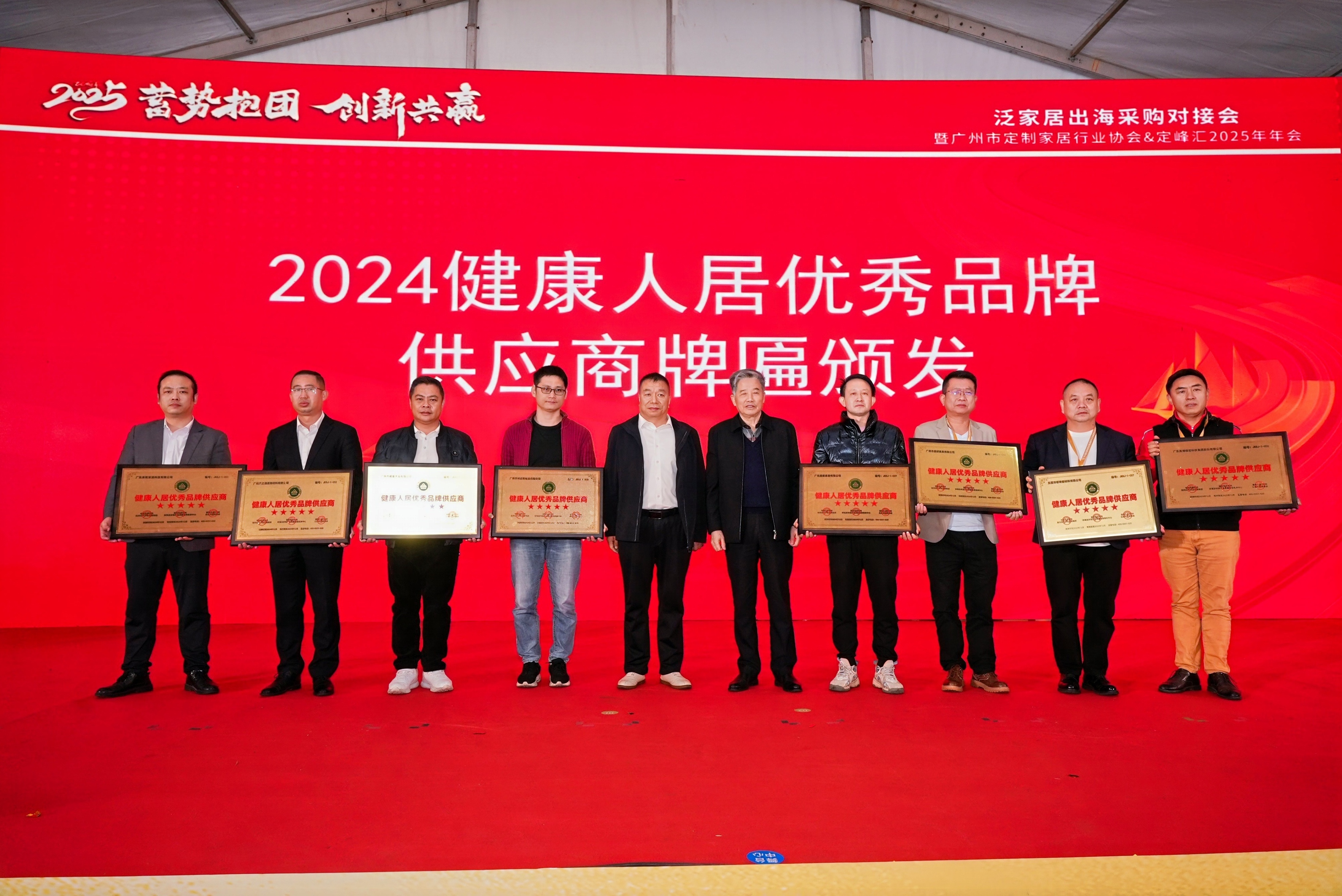 在近日于佛山顺德伦教展览馆盛大召开的 “蓄势抱团,2025 创新共赢” 泛家居出海采购对接会暨广州市定制家居行业协会 & 定峰汇年会上,天湘板业凭借其卓越的产品品质与在健康人居领域的突出贡献,荣获 “健康人居优秀品牌供应商” 荣誉证书,这一殊荣不仅是对天湘板业多年来深耕行业的高度认可,更是其迈向新发展阶段的重要里程碑。
