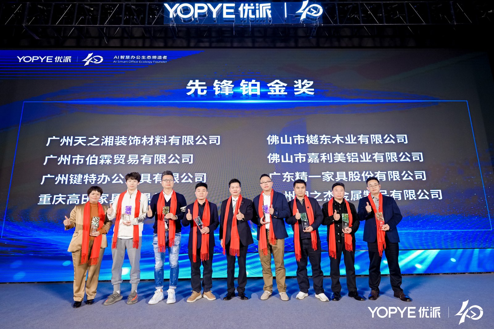 在“匠之路,心致远 —— 优派集团成立 40 周年庆典”这一盛大活动中,天湘板业凭借卓越的表现与深度的合作,从众多合作伙伴中脱颖而出,斩获极具分量的“先锋铂金奖”。这一荣誉不仅是优派集团对天湘板业的高度认可,更标志着双方在长期合作中取得的丰硕成果。
